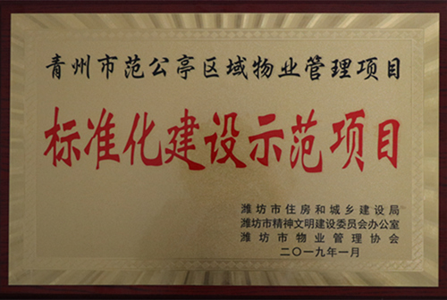 2019年1月青州市范公亭區(qū)域物業(yè)管理項目被評為“標準化建設(shè)示范項目”。