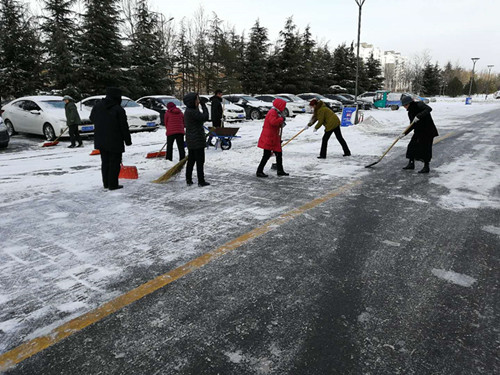 倏忽銀臺搆,俄頃玉樹生。1月15日,2019年第一場雪籠罩了峽山區創新創業服務中心園區。為業主和辦事群眾出行安全,峽山片區管理處啟動極端惡劣天氣應急預案,主動響應,頂風冒雪,以保安保潔為尖兵,分路段開展掃雪除冰工作。降雪持續一上午,項目人員不懼嚴寒反復清掃園區主干道、辦公樓臺階。對積雪較厚、壓實路段 ......