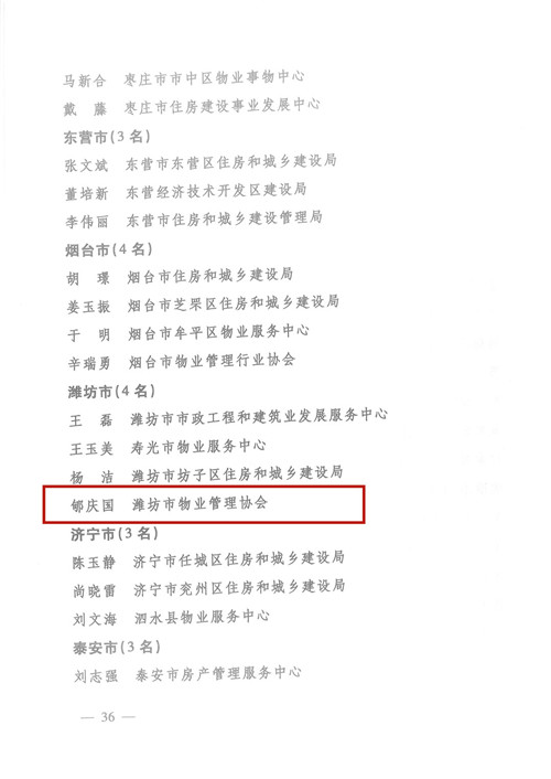 2019年,山東省住房和城鄉建設廳開展了物業服務行業文明創建“標準建設年”活動,為表揚鼓勵先進,發揮示范引領作用,激發創建工作熱情,經逐級申報、審核、公示等程序,公管公司獲得以下省級榮譽:濰坊昌大公共建筑物業管理有限公司榮獲“全省物業服務行業文明創建標兵企業”榮譽稱號;總經理郇慶國兼濰坊市物業協會會長榮 ......