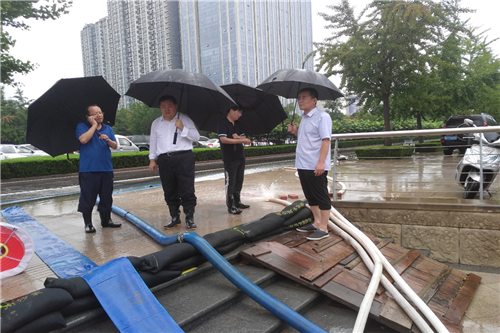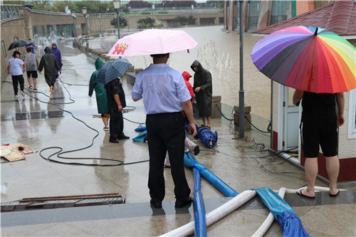 8月10日-11日汛期,濰坊市委常委、副市長(zhǎng)劉建國(guó),濰坊市黨委委員副市長(zhǎng)田民利一行來到藝術(shù)中心景觀河排水現(xiàn)場(chǎng)摸排汛情,指導(dǎo)開展搶險(xiǎn)防汛工作,調(diào)動(dòng)增加一臺(tái)柴油抽水泵,并指出,有序開展防汛工作,注意人員安全,用電安全。