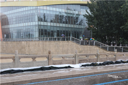 市文化藝術(shù)中心管理處、昌大集團(tuán)分管副總、公管公司領(lǐng)導(dǎo)班子全程參與,并連夜多次召開調(diào)度會(huì),同時(shí)協(xié)調(diào)昌大其他分公司勞務(wù)人員42人,投入運(yùn)輸及工程車輛5輛,小型挖掘機(jī)1臺(tái),水泵8臺(tái),發(fā)電機(jī)2臺(tái)(含濰坊市市政局支援1臺(tái))、汽油泵2臺(tái),注膠板85塊、裝填及運(yùn)輸沙袋約2500袋。