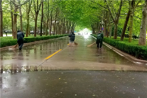 降雨前,檢查排水設(shè)施、收起室外所有宣傳牌及易被大風(fēng)吹落的設(shè)施物資;降雨期間,全體人員明確分工,對(duì)重點(diǎn)區(qū)域?qū)H硕〞r(shí)巡查;降雨后,對(duì)滲水電梯井進(jìn)行抽水處理,排查降雨期間出現(xiàn)的漏雨點(diǎn),并整理上報(bào)機(jī)關(guān)事務(wù)服務(wù)中心。