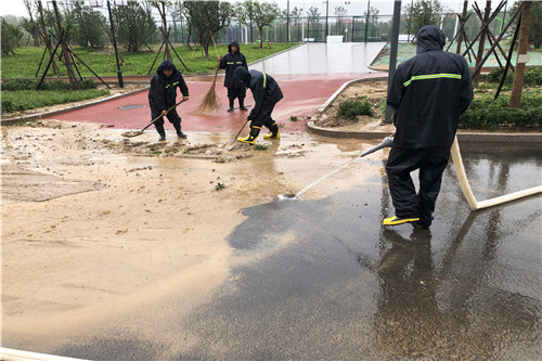 昌樂片區(qū):勝利的喜悅。8月9日昌樂片區(qū)接到臺(tái)風(fēng)應(yīng)急備戰(zhàn)后,立即召集各部門員工展開工作部署。安排96名人員參與應(yīng)急值班,全部24小時(shí)值守待命;準(zhǔn)備防汛沙袋150條、抽水泵3臺(tái)、防水薄膜200米、工程車2輛;協(xié)調(diào)自來水公司做好應(yīng)急準(zhǔn)備工作,并開啟緊急自備井供水;根據(jù)降水情況不定期巡查并記錄漏水滲水情況。對(duì)配電室、監(jiān)控室、中控室等重點(diǎn)區(qū)域巡查,確保園區(qū)無漏電、積水隱患。