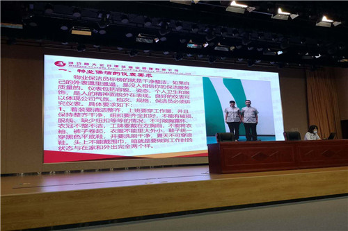 此次培訓(xùn)由品質(zhì)監(jiān)察部及峽山片區(qū)負(fù)責(zé)人、全體保潔員參加。